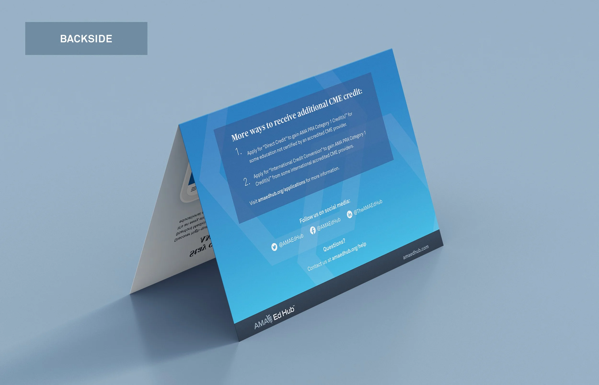These postcards are for physicians interested in learning more about the AMA Ed Hub and for content partnership opportunities.